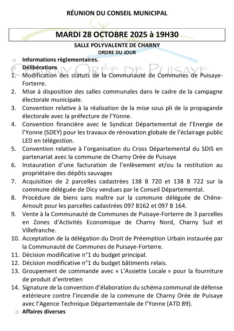 mardi 28 octobre à 19h30, salle polyvalente de Charny.