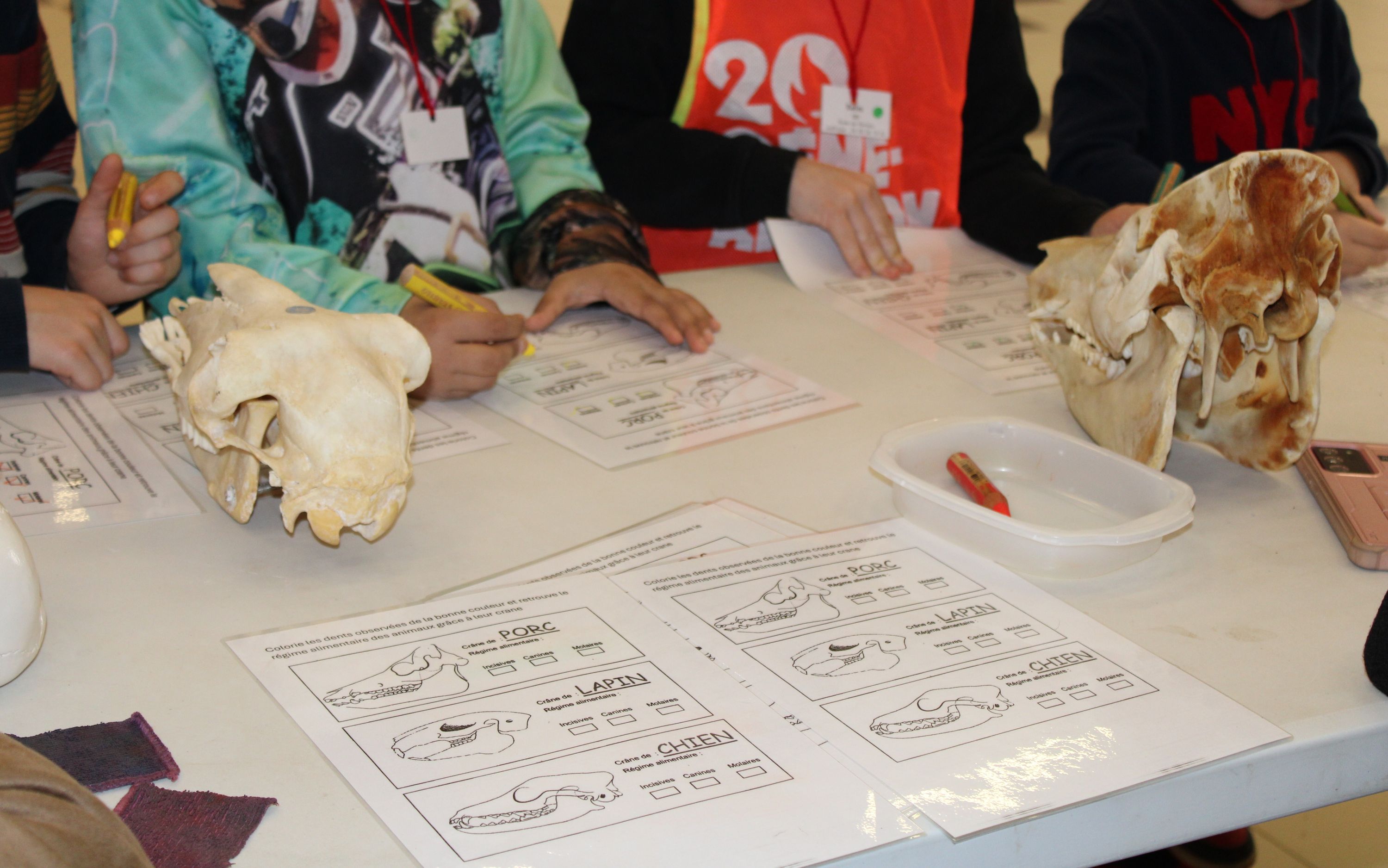 💀 D’autres ateliers mettaient en lumière les liens entre forme et fonction dans le monde animal, grâce à l’observation de crânes