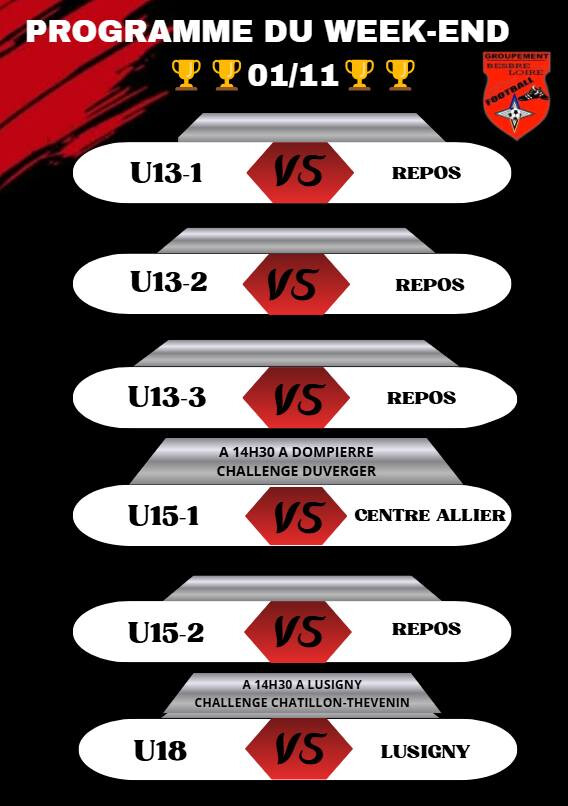 PROGRAMME DU SAMEDI 01 NOVEMBRE 2025