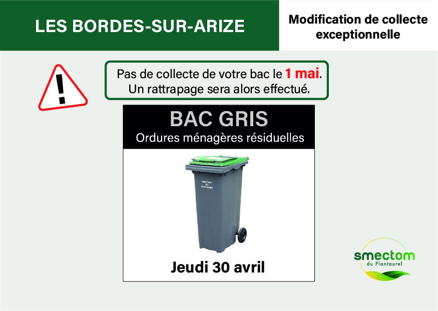 SMECTOM-MODIFICATION DE COLLECTE EXCEPTIONNELLE