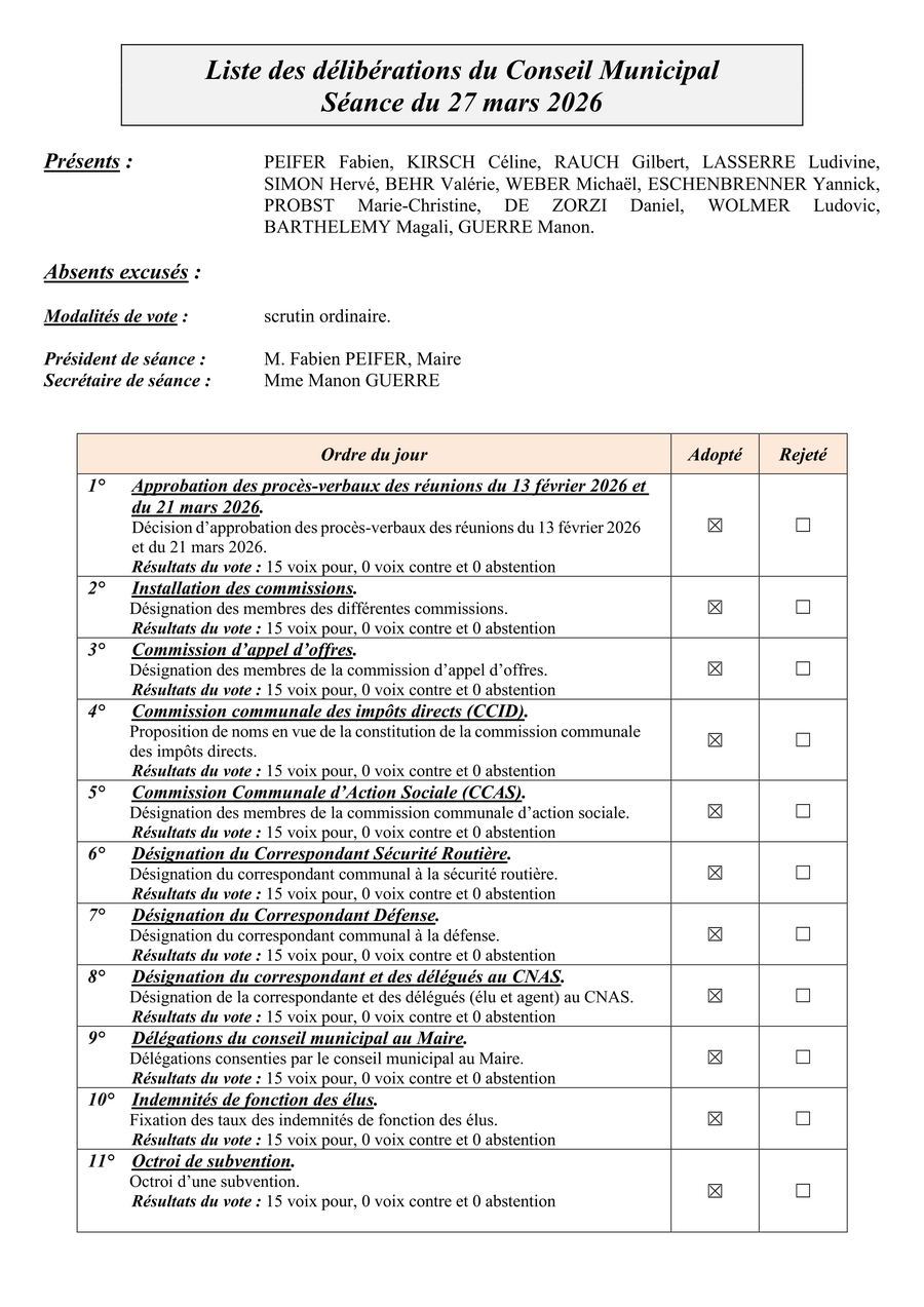 Retrouvez, ci-joint, la liste des délibérations ainsi que les délibérations.