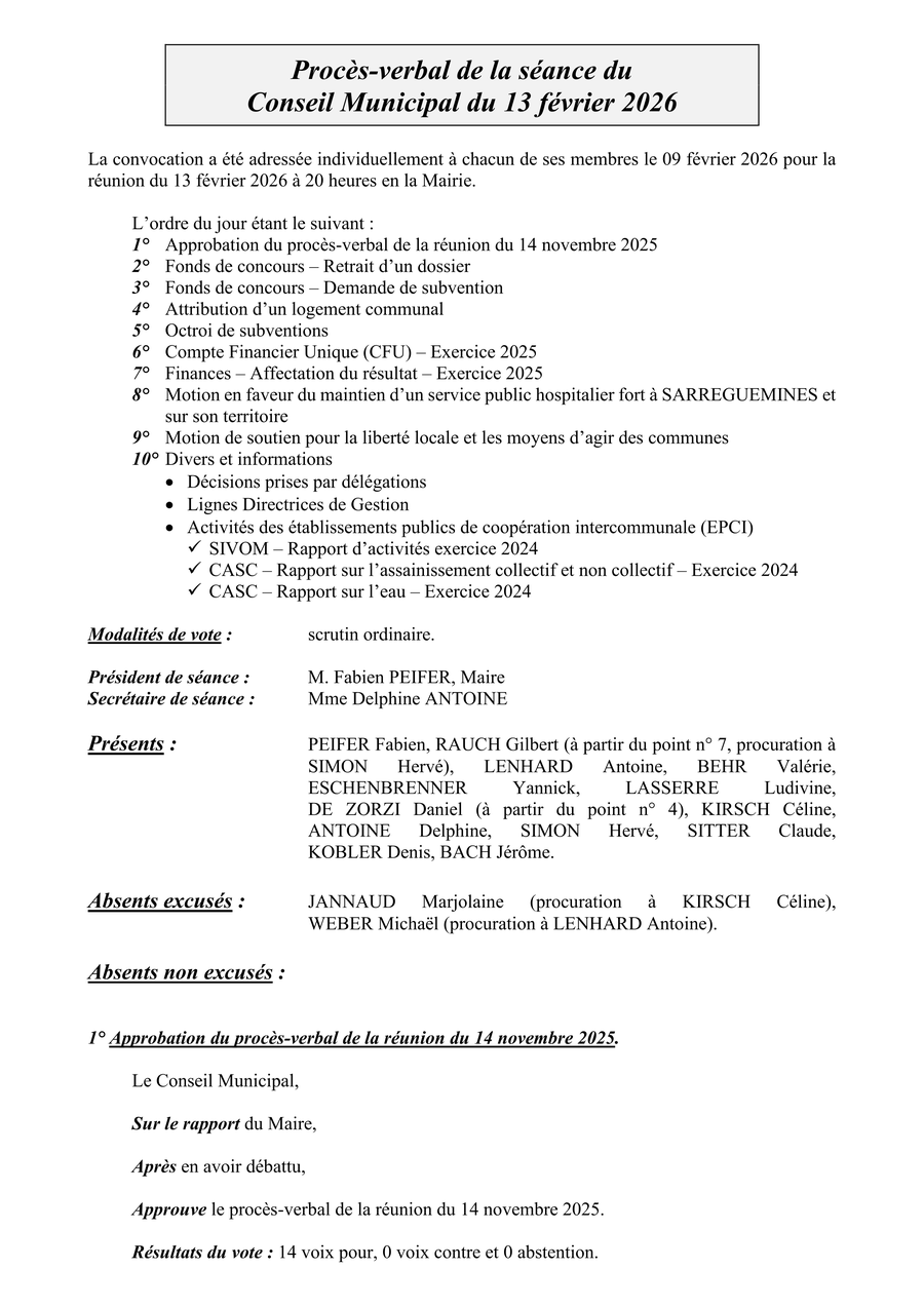 Ceux-ci ont été approuvé lors de la réunion du 27 mars 2026.