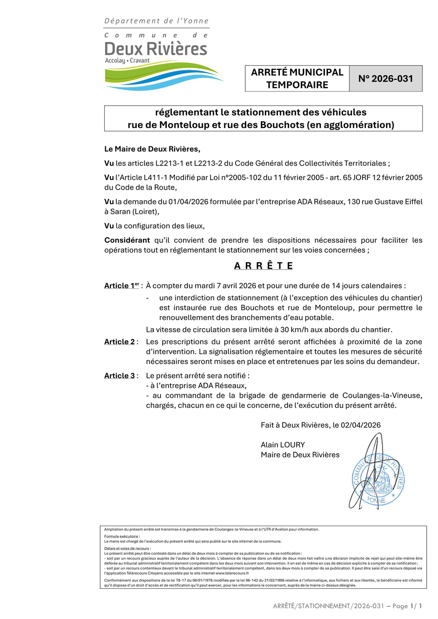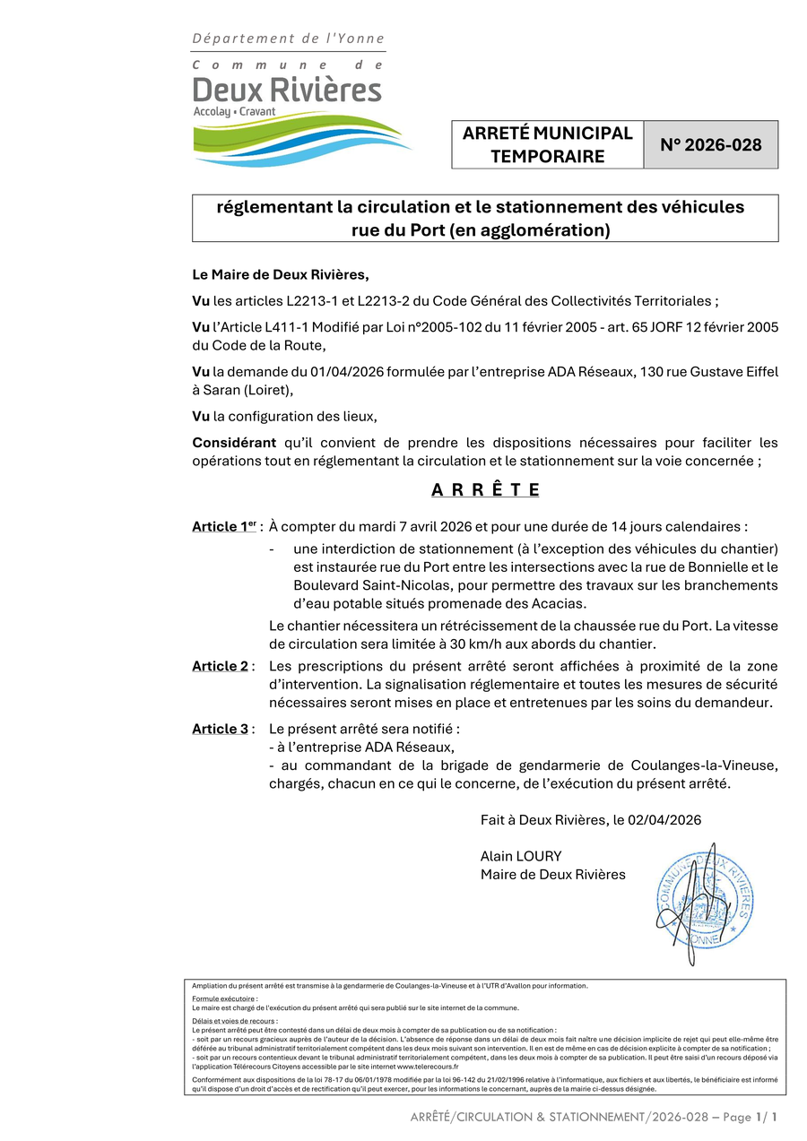 Pour permettre le renouvellement de branchements d'eau potable et assurer la sécurité des biens et des personnes,