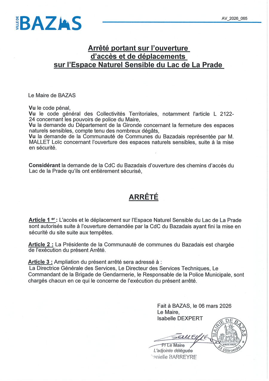 DEPUIS VENDREDI 6 MARS 2026 LA VILLE DE BAZAS, SUR DEMANDE DE LA COMMUNAUTE DE COMMUNES DU BAZADAIS,
