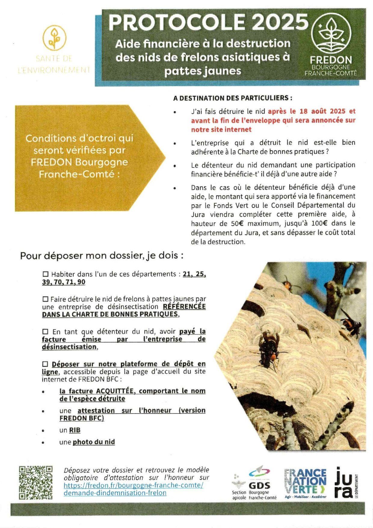Aide financière à la destruction de nids de frelon