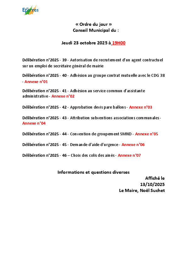 Prochain conseil municipal