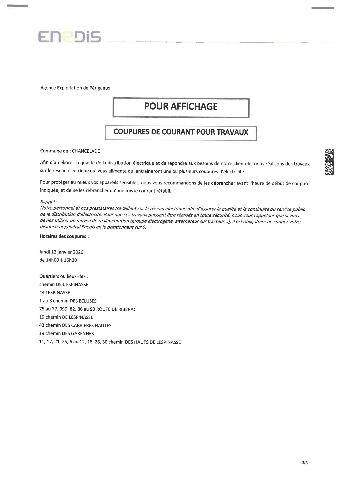 Horaires des coupures :