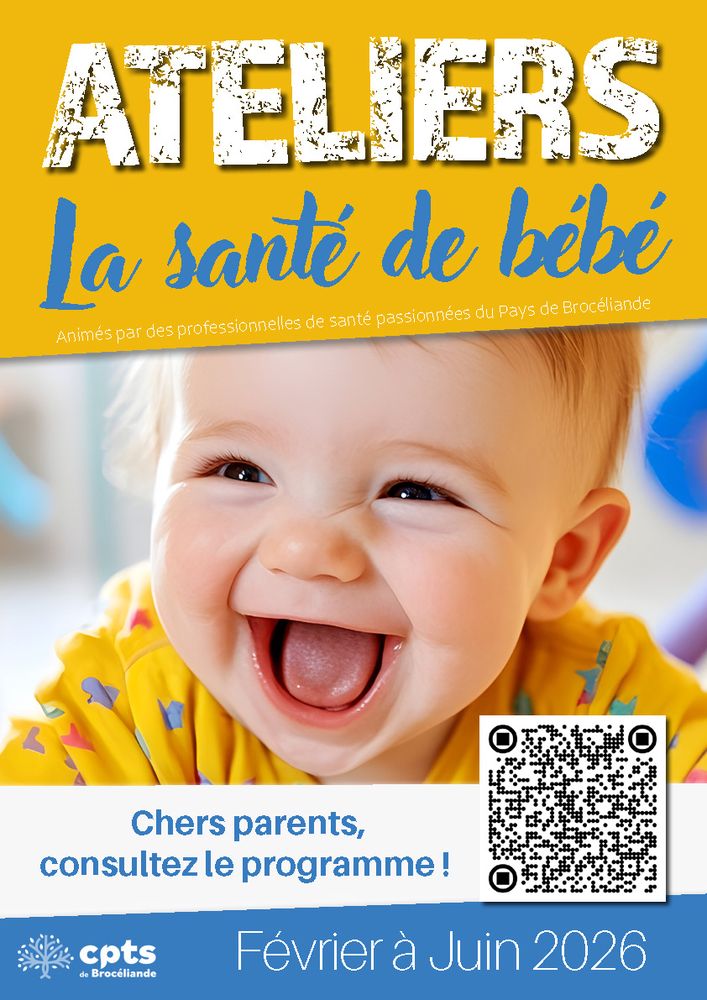 👶 De février à juin 2026, la CPTS de Brocéliande propose des ateliers gratuits animés par des professionnelles de santé, à destination des futurs parents, parents de bébés, grands-parents et pros de la petite enfance.