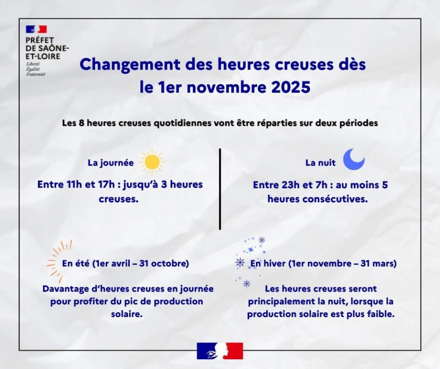 Nouveaux horaires Heures Creuses dès le 1er novembre 2025 !