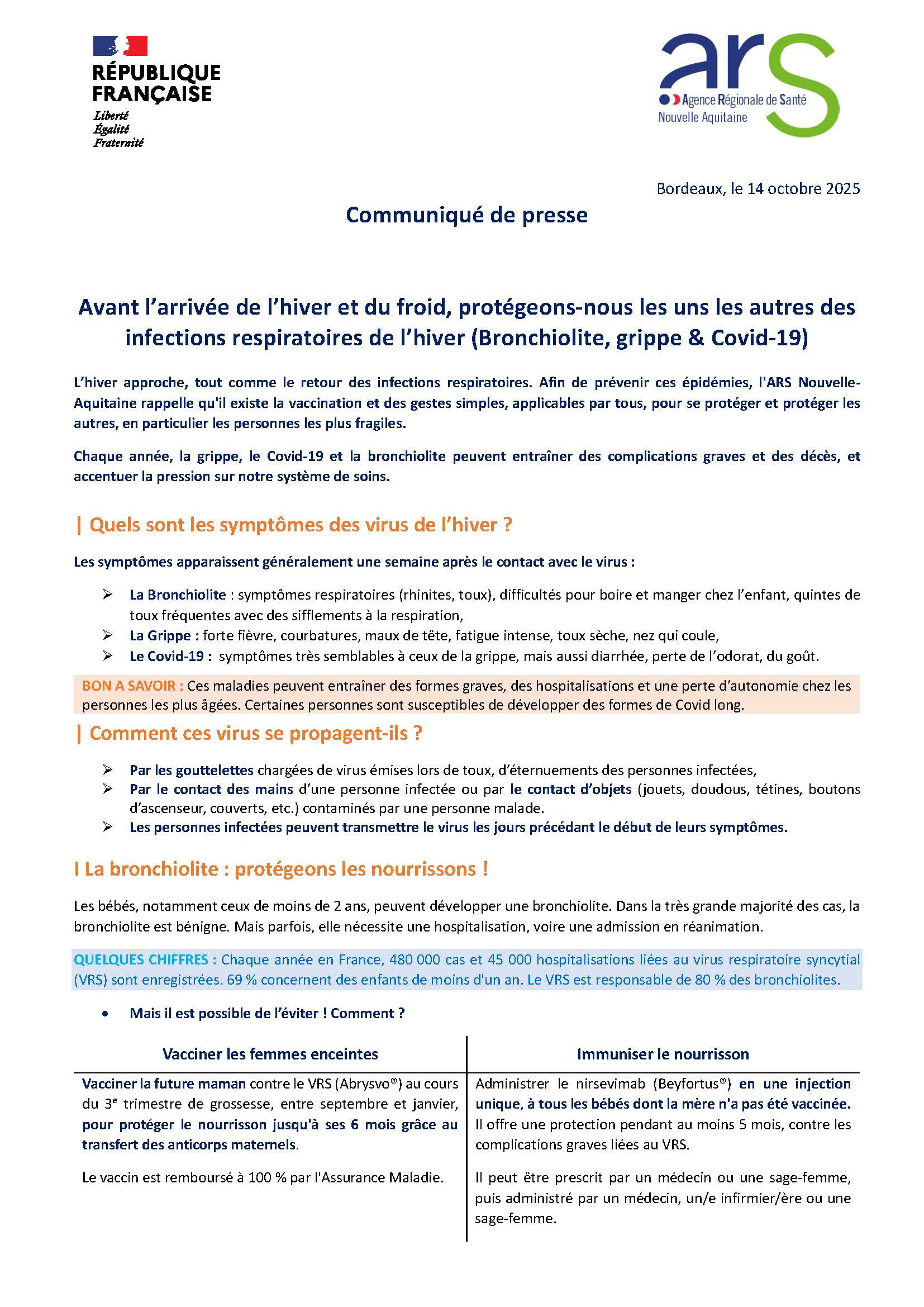 L’hiver approche, tout comme le retour des infections respiratoires. Afin de prévenir ces épidémies, l'ARS Nouvelle-