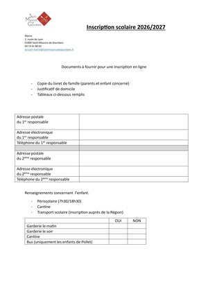 INSCRIPTION SCOLAIRE DES ENFANTS NES EN 2023