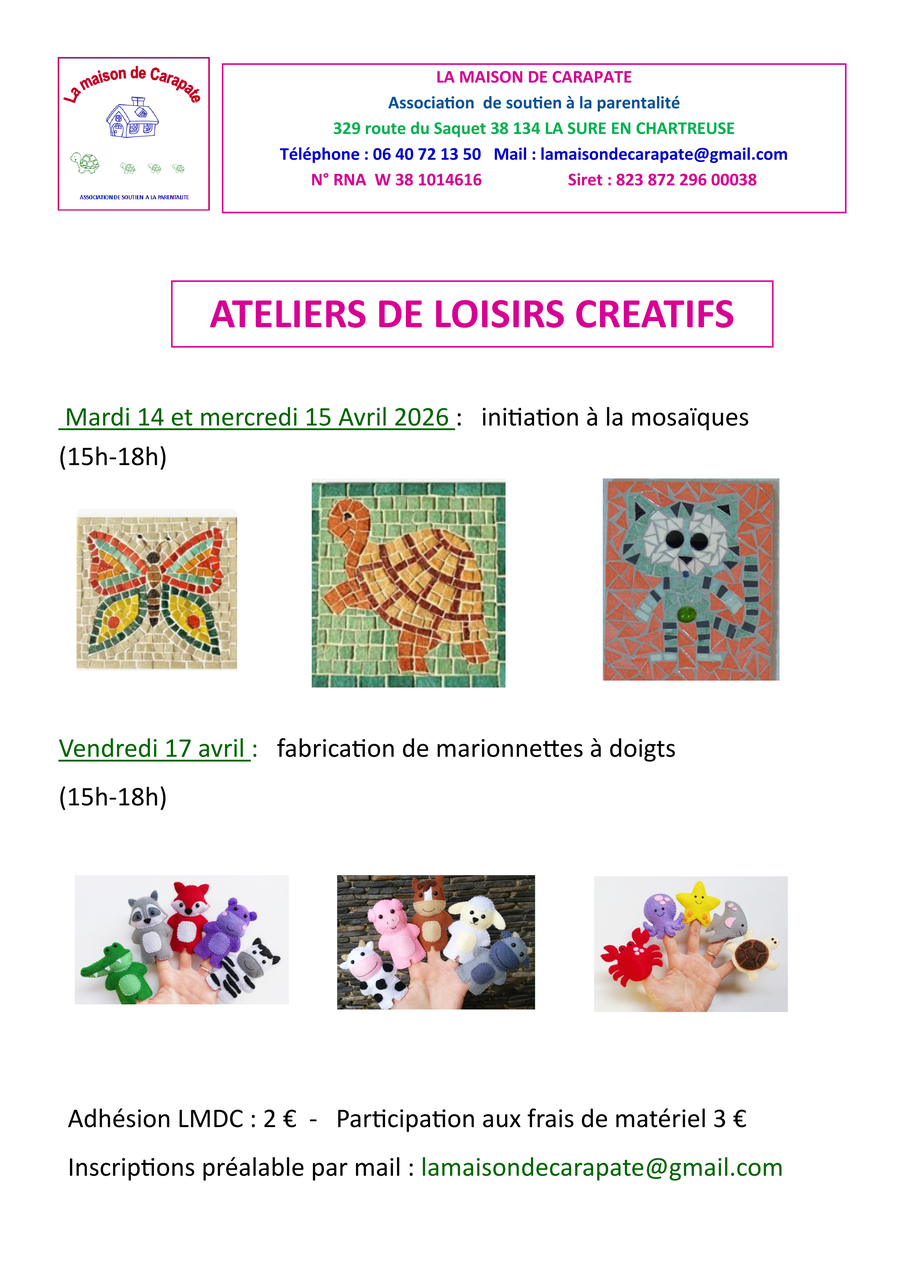 LA MAISON DE CARAPATE VOUS PROPOSE 3 JOURNÉES D ATELIERS PENDANT LES VACANCES D AVRIL