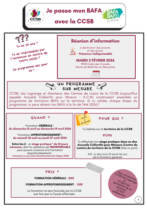 La communication est en ligne sur le site internet de la CCSB : https://ccsb-saonebeaujolais.fr/au-quotidien/enfance-jeunesse/formation-bafa/