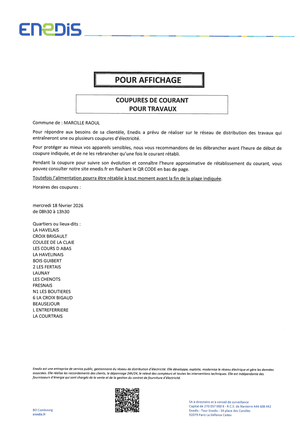 COUPURES DE COURANT POUR TRAVAUX - ENEDIS