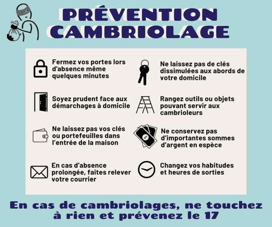 Une tentative de cambriolage sur la commune nous a été signalée ( secteur La Fondelay ). Restez prudents et vigilants. N'hésitez pas à prévenir la Gendarmerie ( 17 ) même pour une tentative ou toute situation suspecte.
