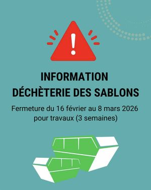 L'Agglomération vous informe que la déchèterie des Sablons sera fermée