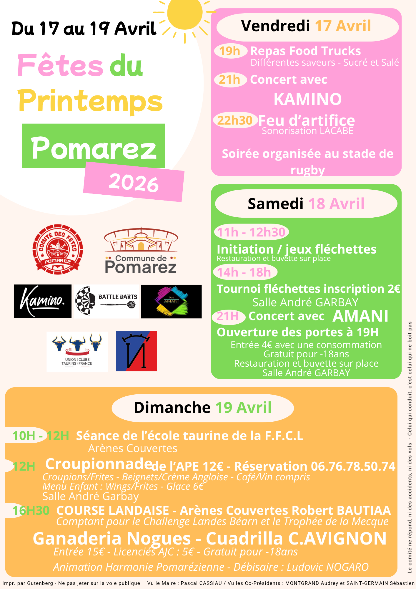 📍 Lieu : salle des fêtes (à côté de la mairie), 40360 Pomarez