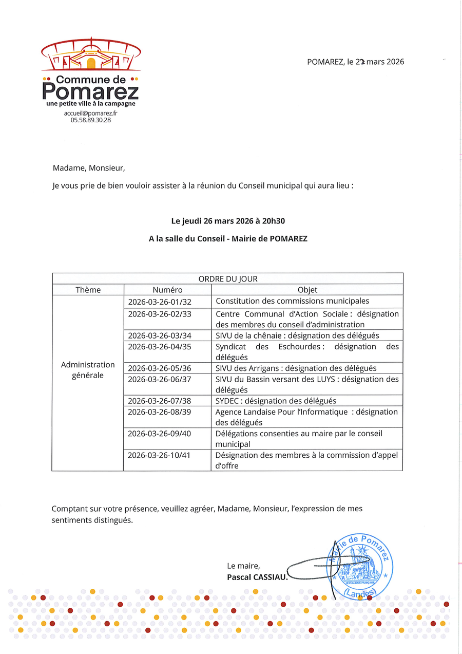 Le prochain conseil municipal se tient jeudi 26 mars 2026 à 20h30.