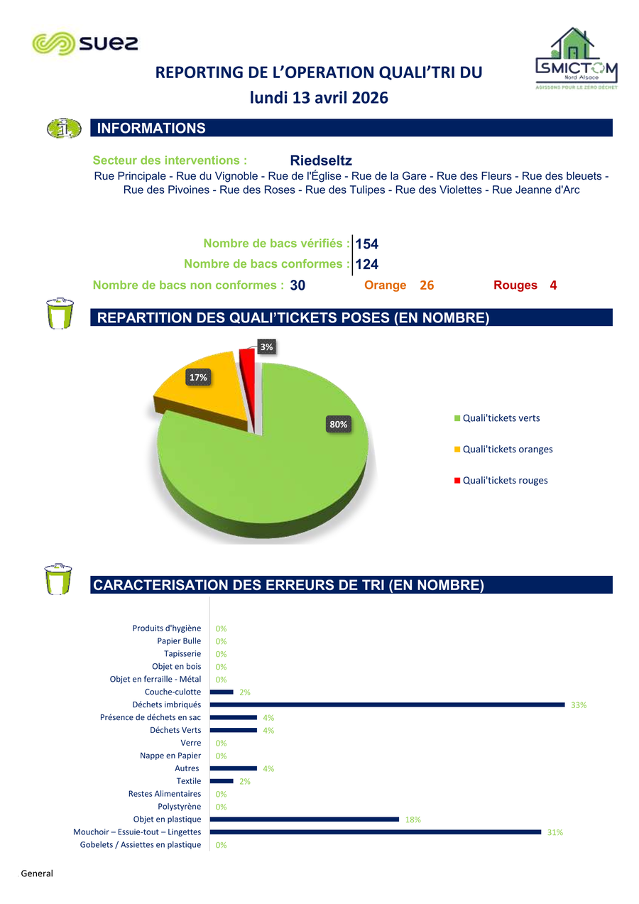 Sur 154 bacs bleus contrôlés, le taux de non-conformité est de 19.48 %.