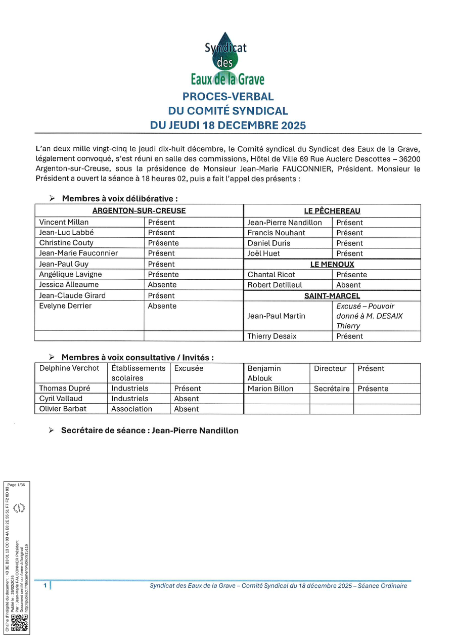Syndicat des Eaux de la Grave - 36200