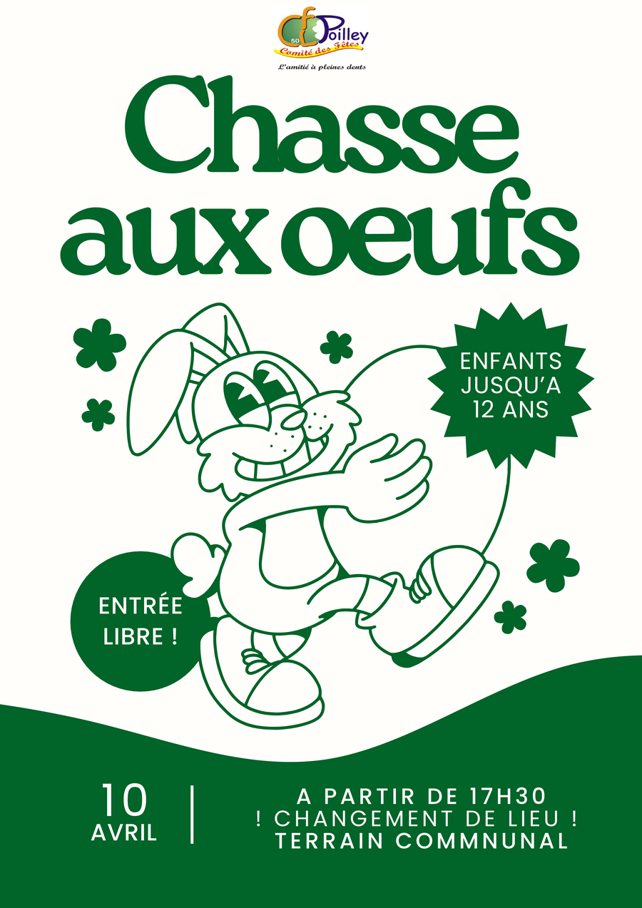 Le comité des fêtes et de loisirs invite les enfants de Poilley à participer à la chasse aux œufs