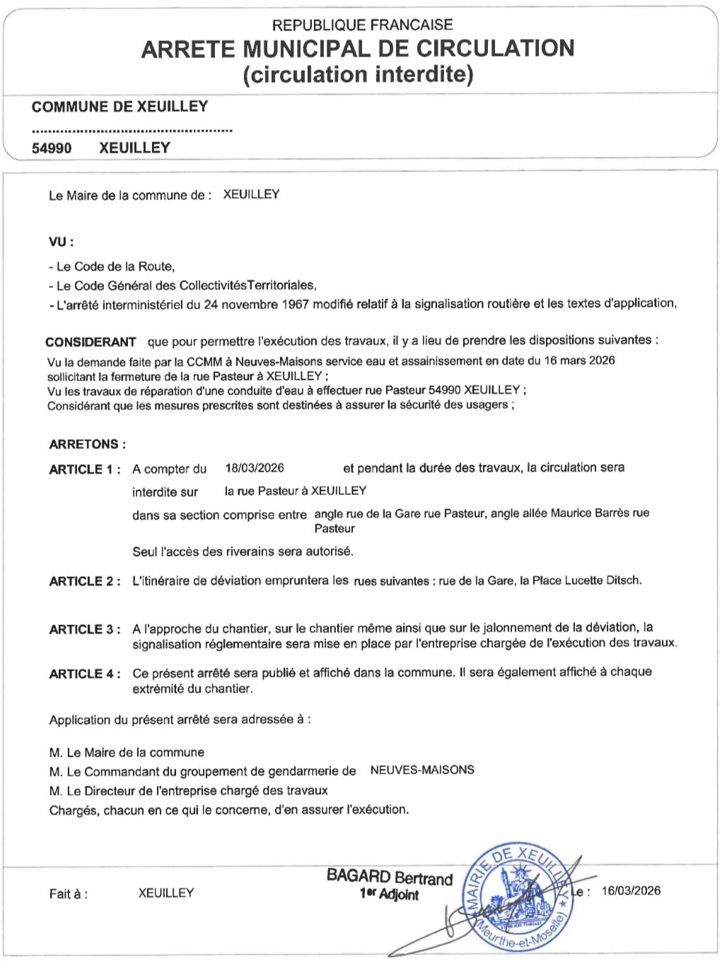 Cf arrêté municipal joint.