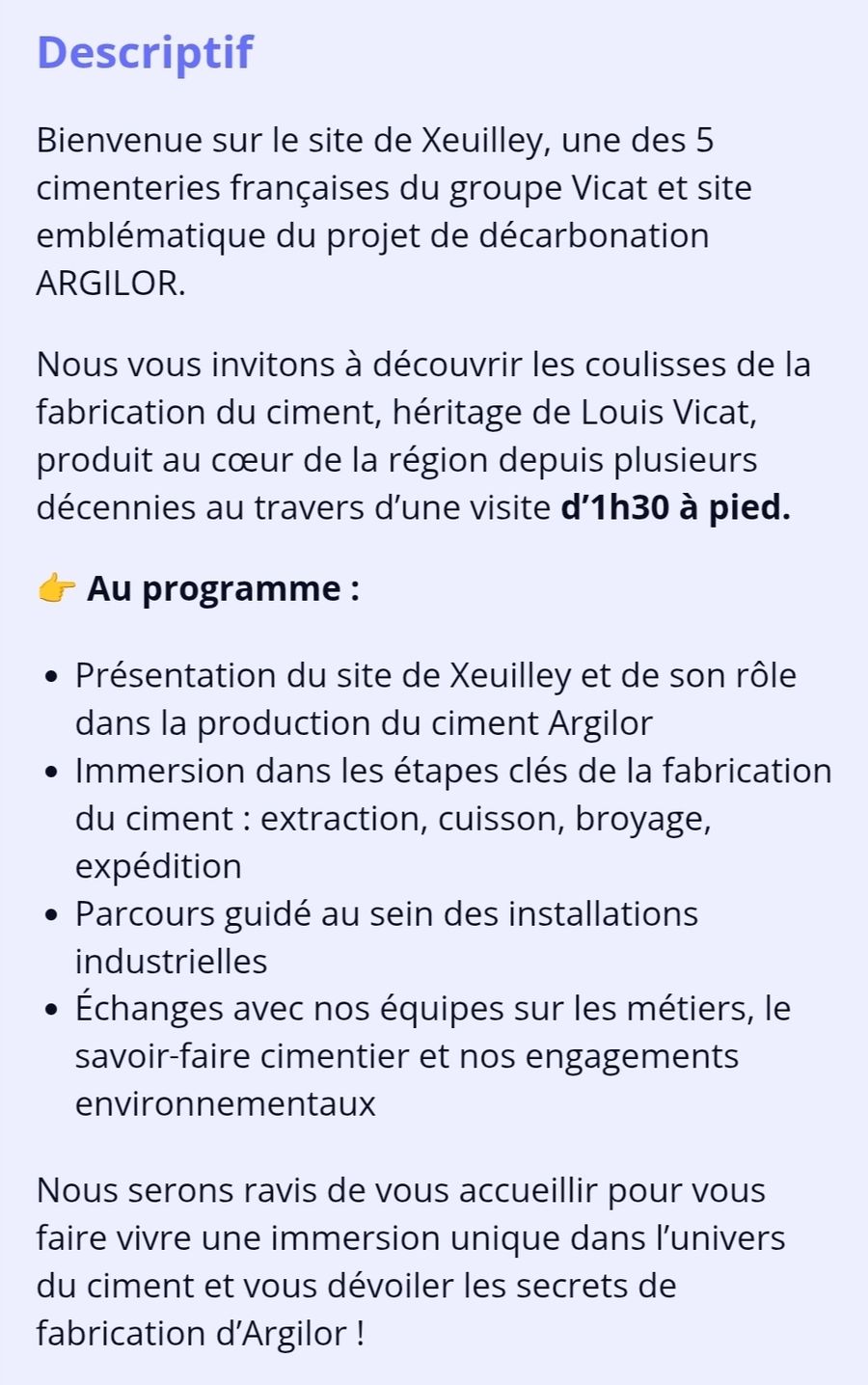 Visite de la cimenterie Groupe Vicat de Xeuilley samedi 21 mars