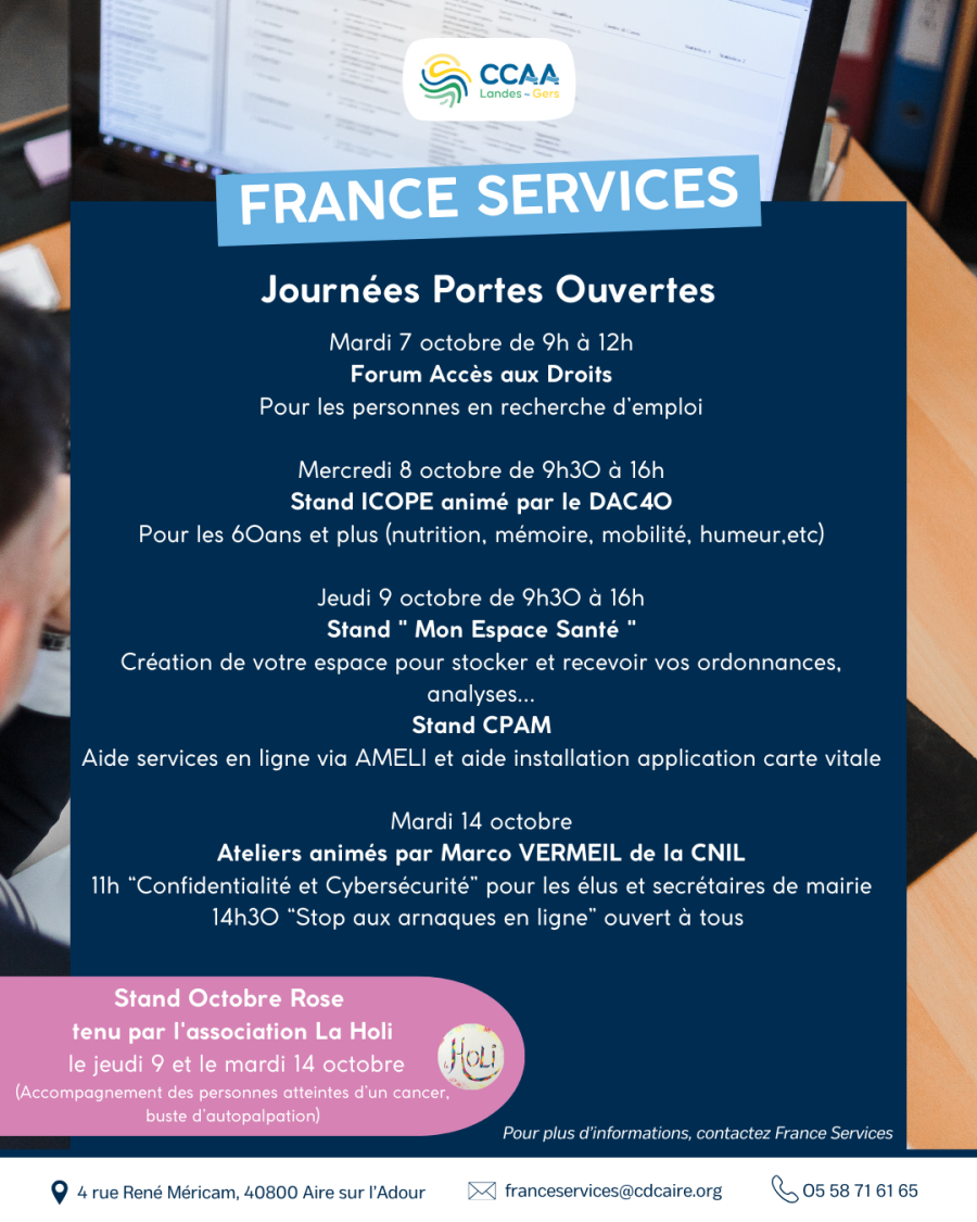 📍 France Services – 4 rue René Méricam, 40800 Aire-sur-l’Adour