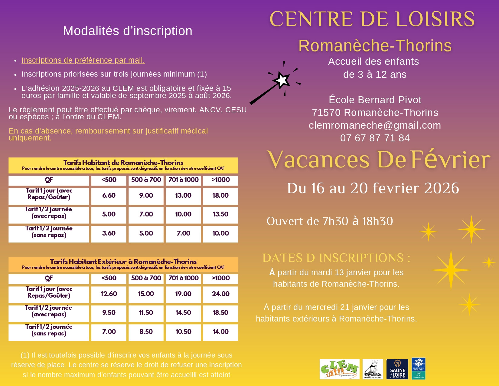 Renseignement au 03 85 35 22 02