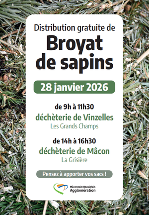 Distribution de broyat de sapins aux usagers sur les déchèteries de Vinzelles et de La Grisière.