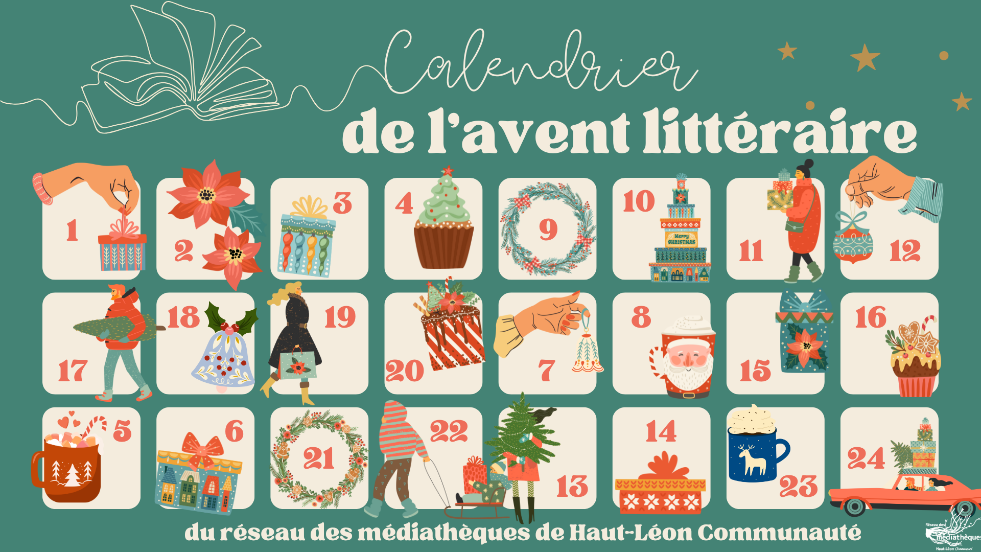 Pour glisser en douceur vers la magie de Noël, découvrez le Calendrier de l'Avent littéraire du réseau des médiathèques de Haut-Léon, où chaque jour de décembre vous réserve un conseil littéraire à savourer.