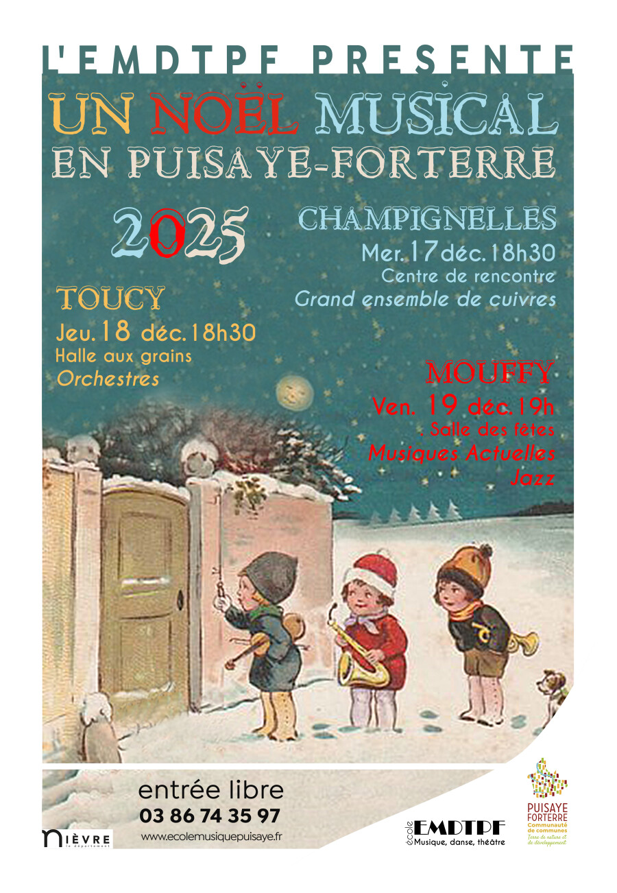 Comme chaque année, l’Ecole de Musique, Danse et Théâtre de Puisaye-Forterre organise son festival « Un Noël Musical en Puisaye-Forterre » qui aura lieu du 17 décembre au 19 décembre 2025 sur tout le territoire.