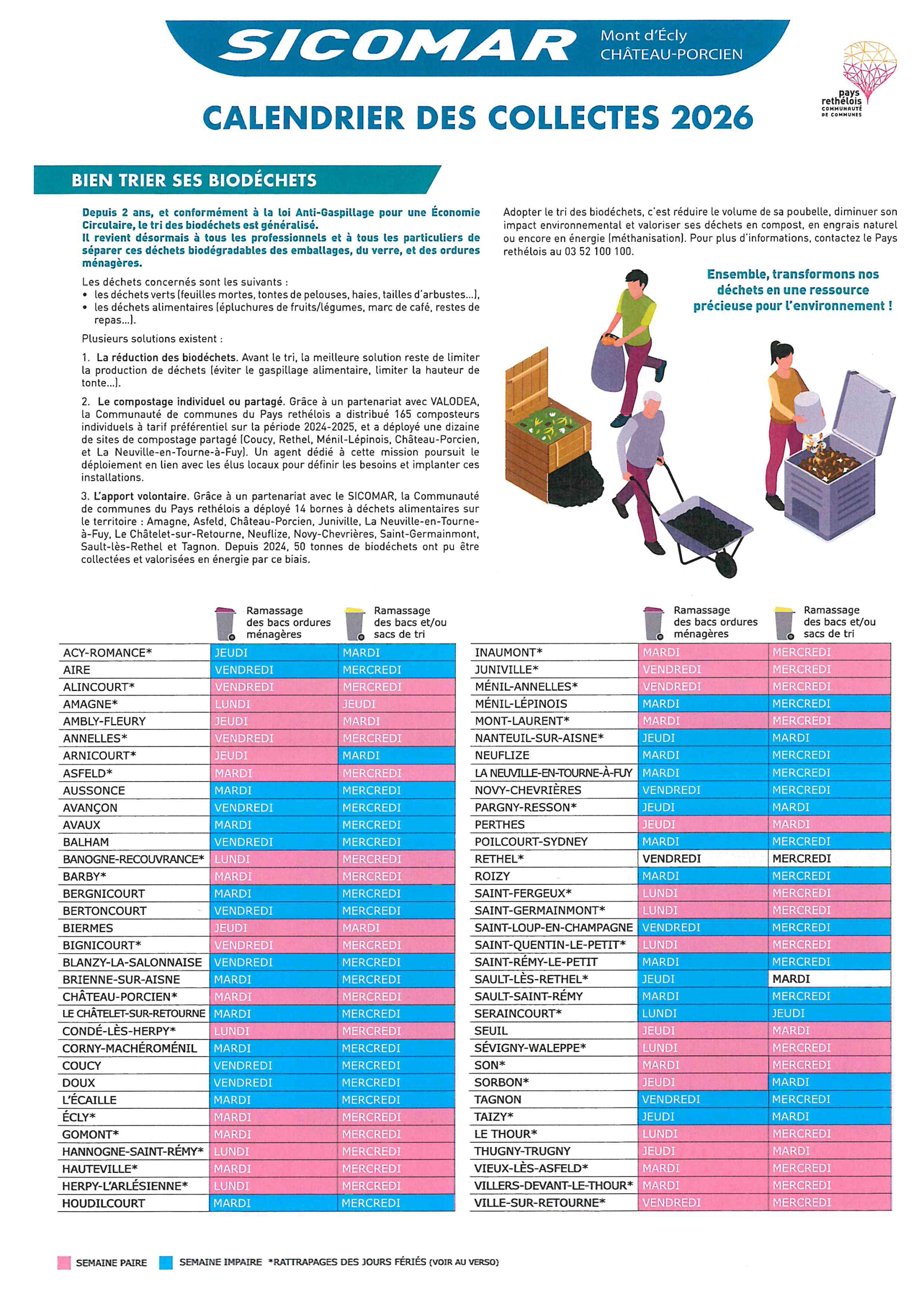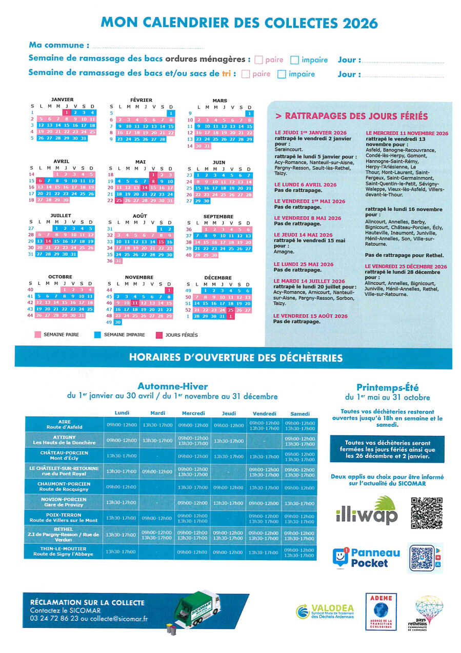 Pour le tri, des sacs jaunes transparents sont disponibles au SICOMAR à Château-Porcien, à la communauté de communes des Crêtes Préardennaises et à la communauté de communes du Pays rethélois.
