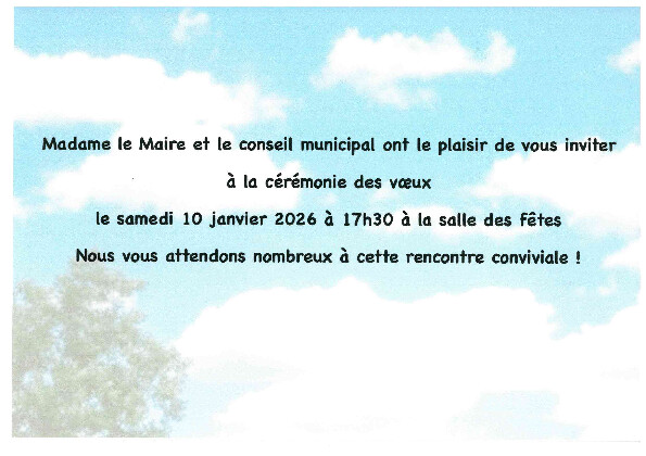 Madame le Maire, les Conseillers Municipaux et le personnel de la commune vous souhaitent de Joyeuses Fêtes de fin d'année.