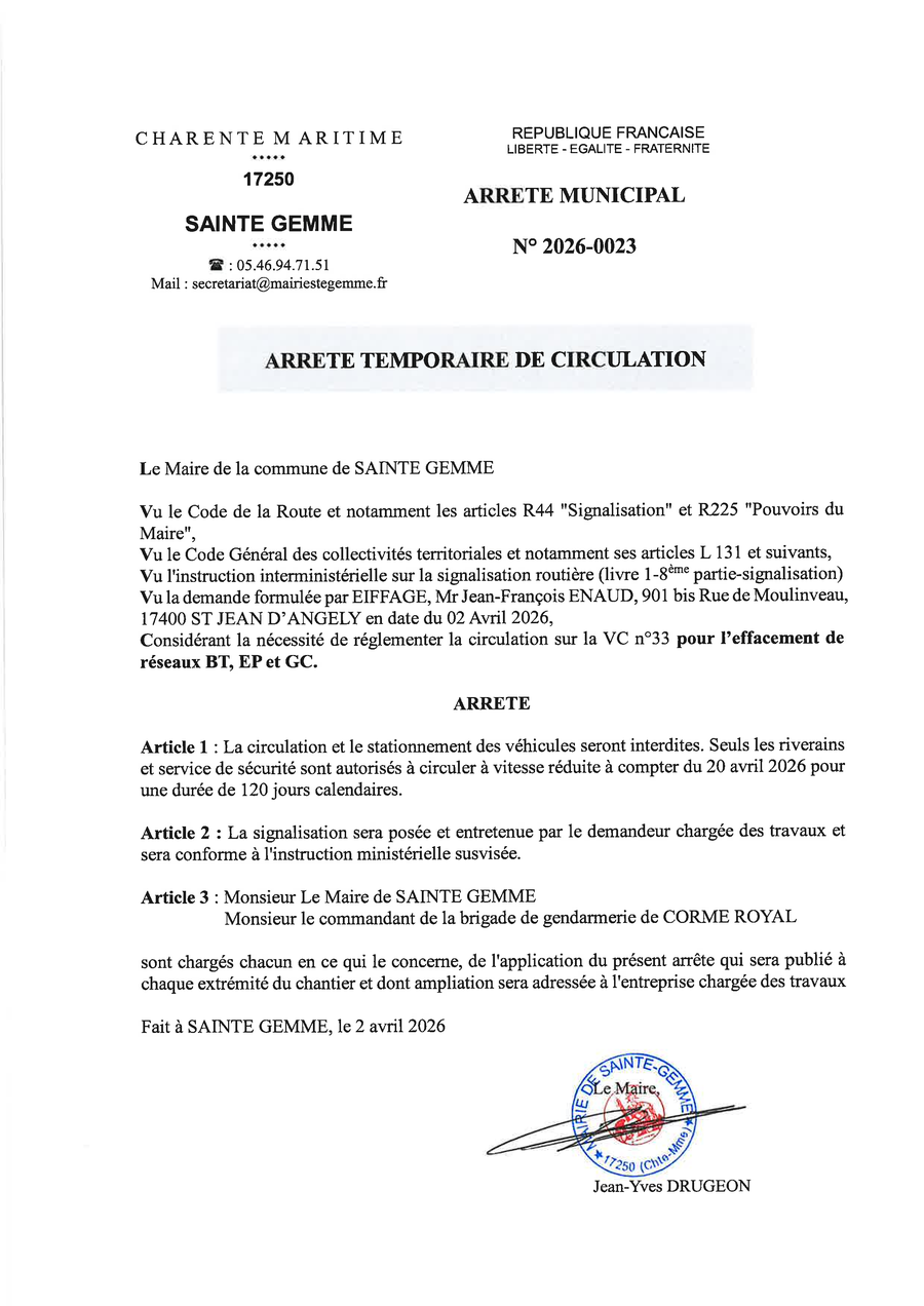 Mail : secretariat@mairiestegemme.fr