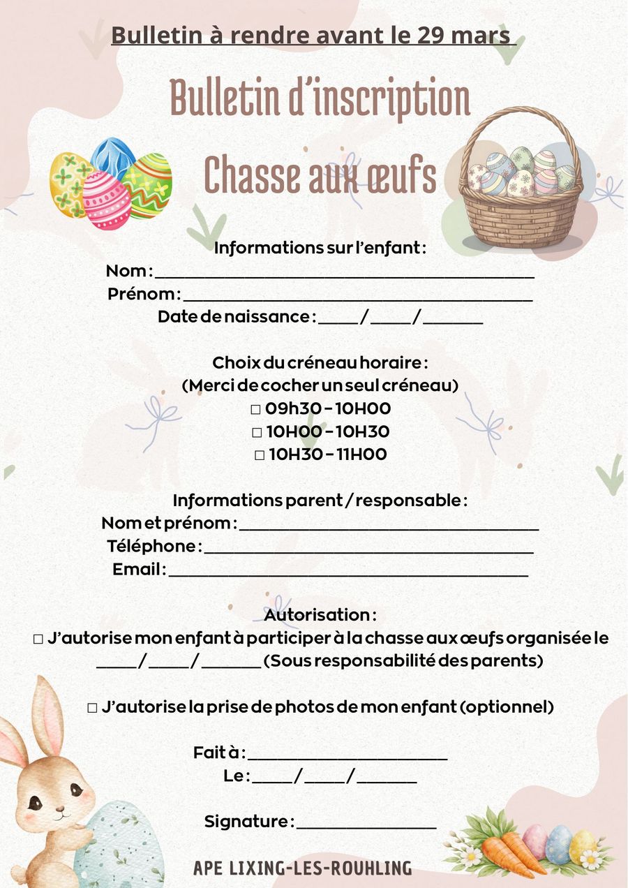 Merci de prévoir un panier pour les oeufs de Pâques !