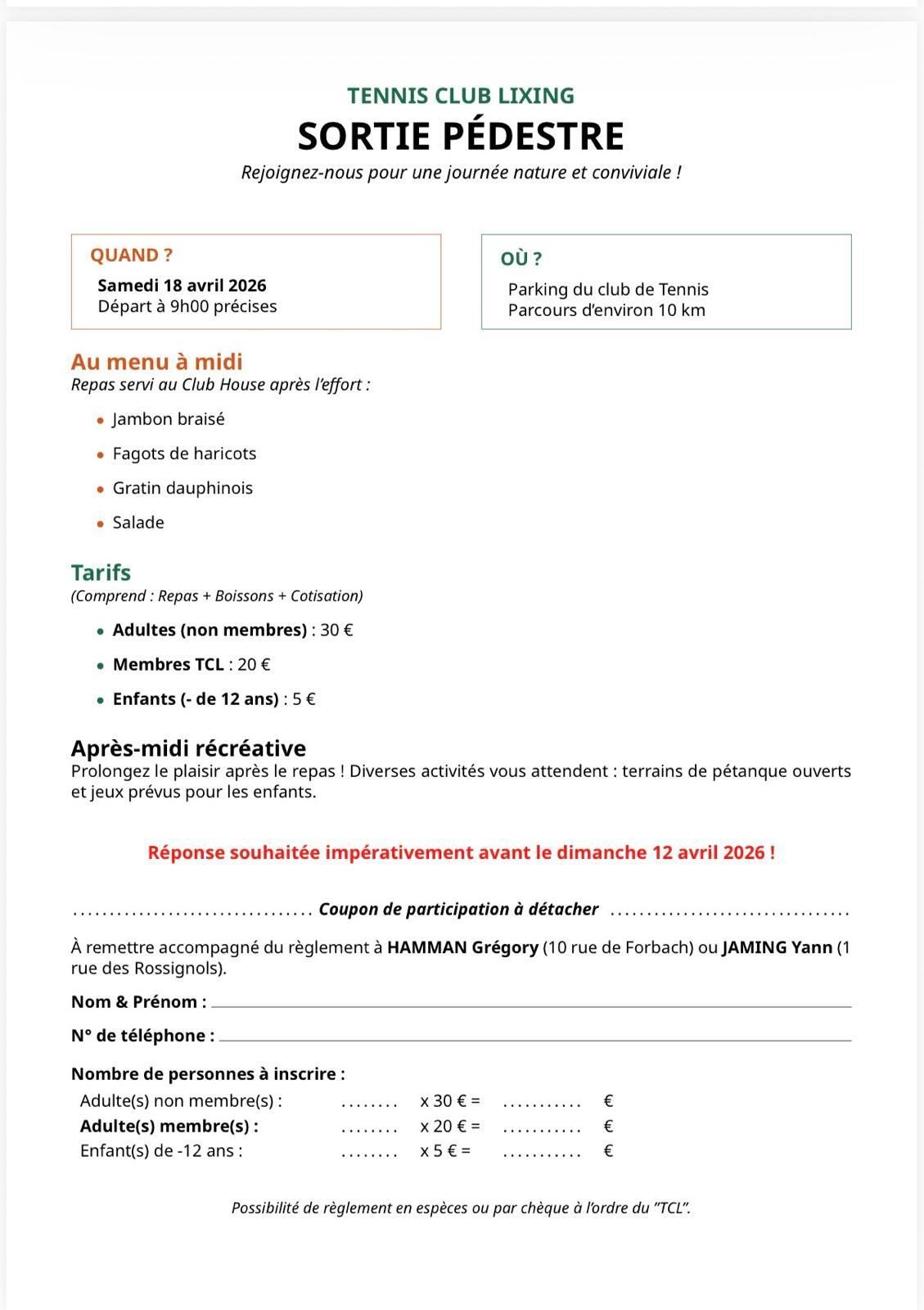 🛑 Date limite des inscriptions : dimanche 29 Mars 2026
