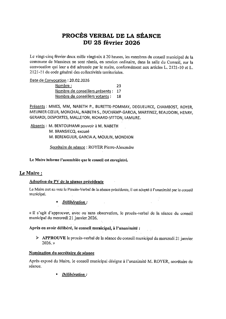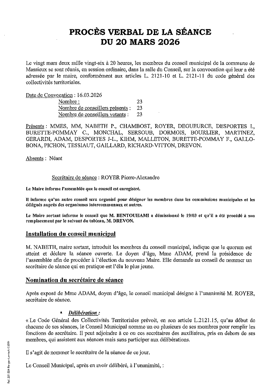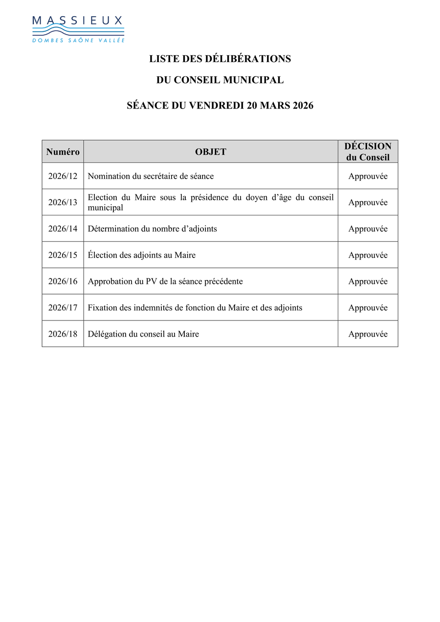 Liste des délibérations examinées lors du Conseil Municipal du 1er avril 2026