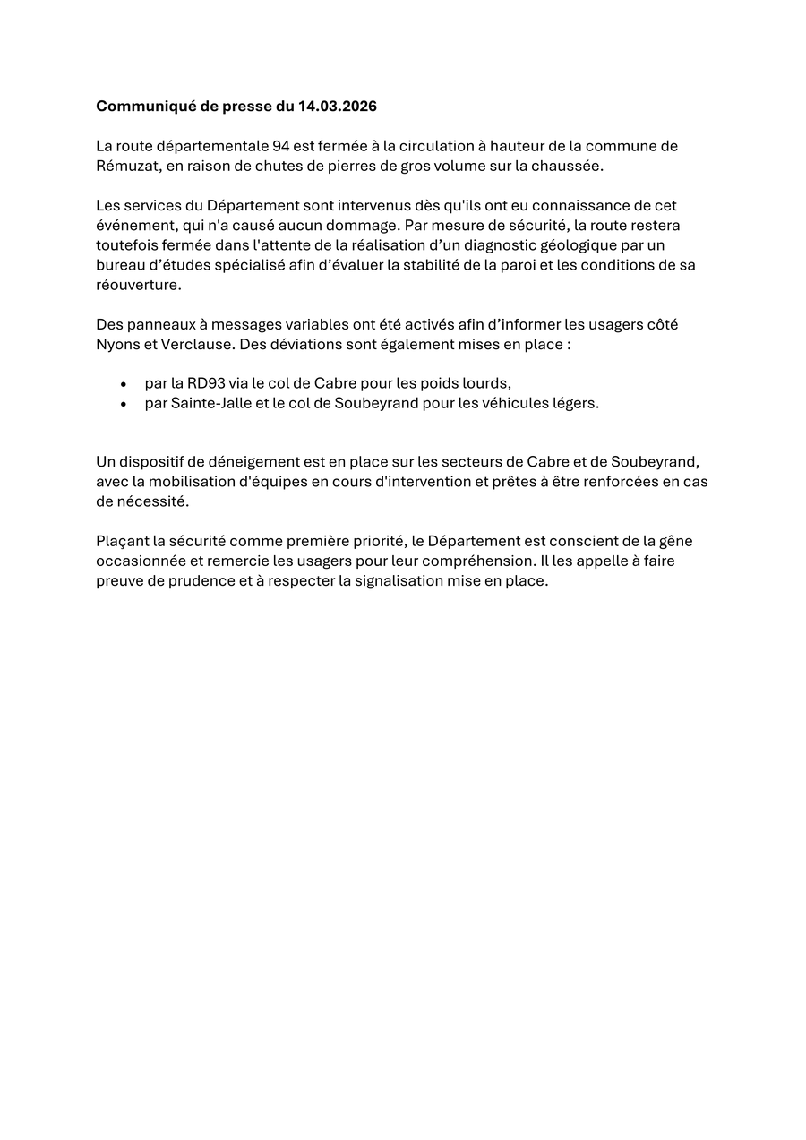 Vendredi 20 mars la circulation sera pertubée sur la route de bramard et le chemin de la buse en raison des travaux de goudronnage qui font suite à la réfection du réseau d’eau potable.