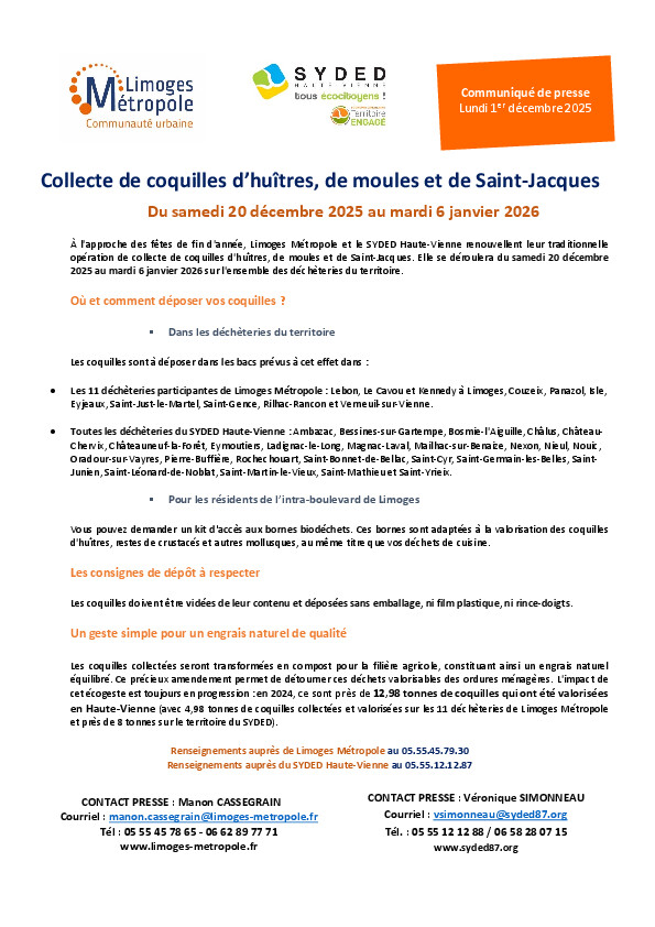 Rappel important concernant les horaires des déchèteries : Nous vous rappelons que seuls les horaires indiqués sur notre site Internet officiel sont les horaires valables et mis à jour. https://www.syded87.org/images/horaires_decheteries_syded.pdf