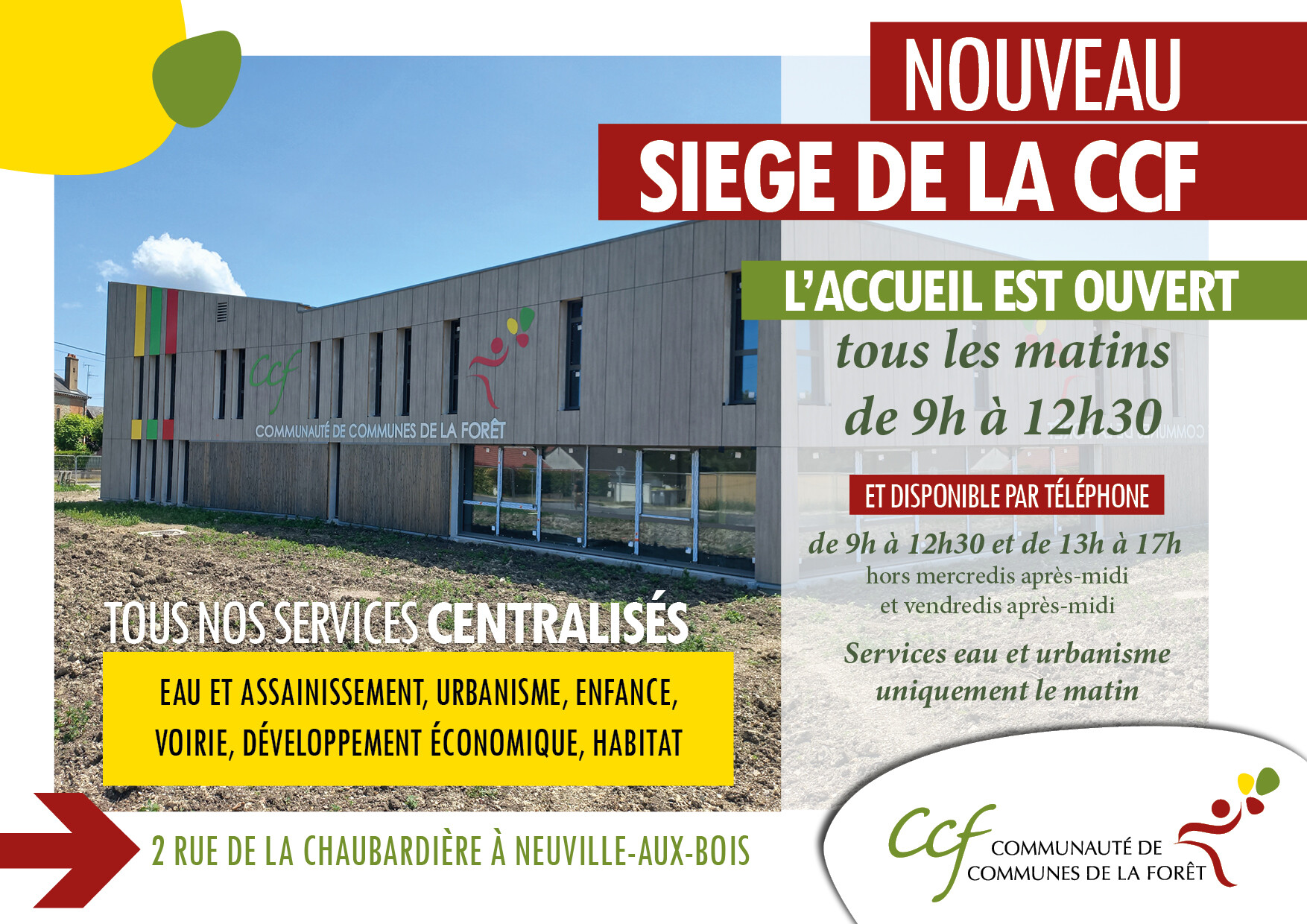 Les agents de la Communauté de Communes de la Forêt ont déménagé dans leur nouveau siège, situé 2 rue de la Chaubardière à Neuville-aux-Bois.