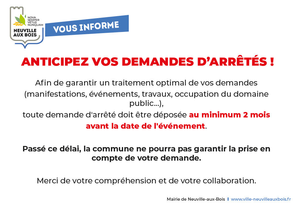➡️ Pour vous inscrire rendez-vous à la mairie de Neuville-aux-Bois avec :