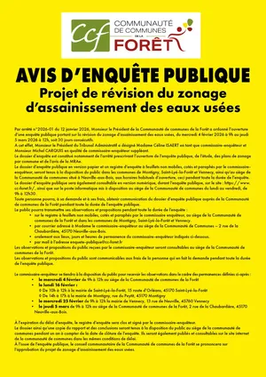 La Communauté de Communes de la Forêt lance une enquête publique dans le cadre de la révision du zonage d’assainissement des eaux usées.
