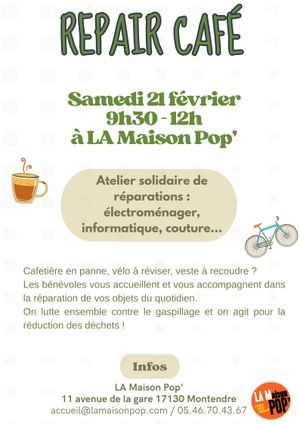 Infos : LA Maison Pop’, 11 avenue de la gare 17130 Montendre ; 05 46 70 43 67 ou accueil@lamaisonpop.com.