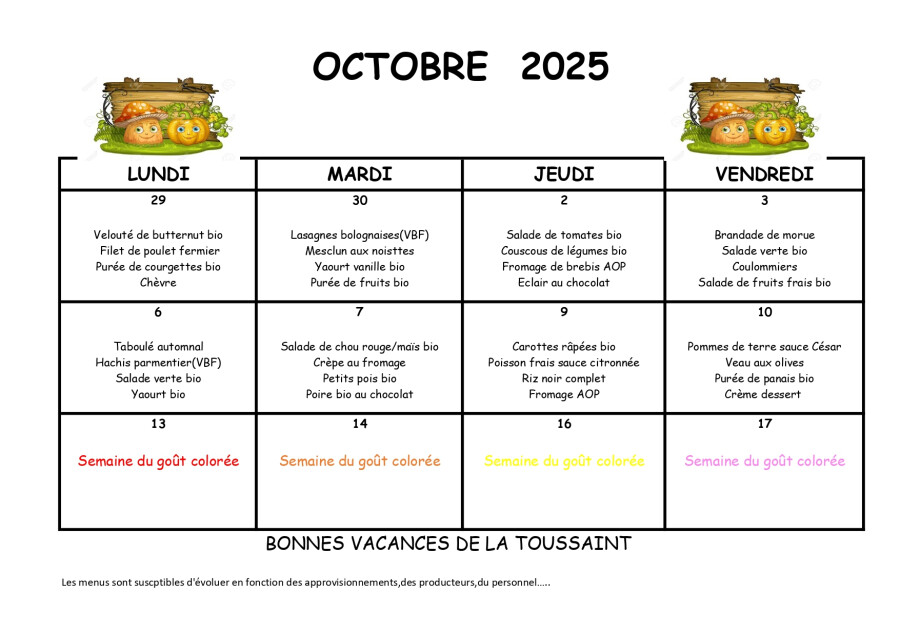 Les jours de classe Lundi-mardi-jeudi-vendredi :