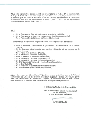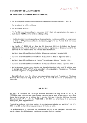 La circulation sera interrompue dans les 2 sens de circulation pour une journée entre le Lundi 19 & le Vendredi 23 Janvier 2026 afin de réaliser l'abattage d'arbres dangereux.
