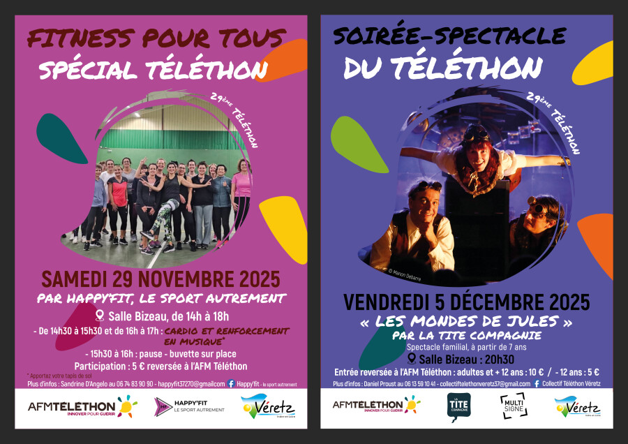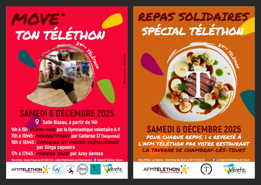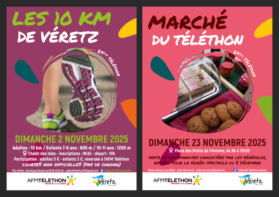 Avec le soutien de la Ville de Véretz et l’implication d’associations vérétzoises et de partenaires solidaires, le Collectif Téléthon Véretz vous donne rendez-vous pour la suite des animations solidaires !
