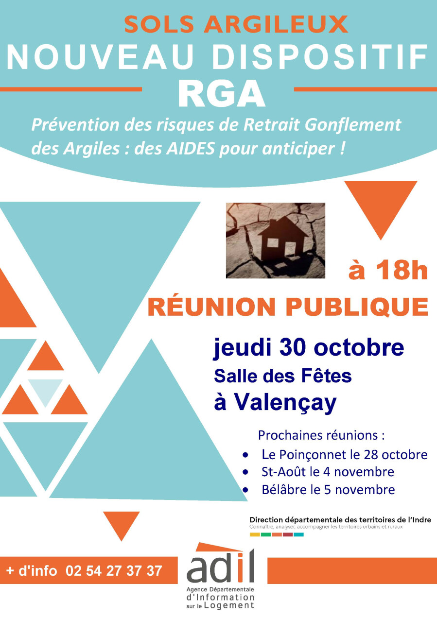 Le gouvernement a lancé en septembre une expérimentation dans onze départements - dont l'Indre - destinée à soutenir les propriétaires habitant dans une « zone d'exposition forte » au RGA (retrait-gonflement des argiles). L'ADIL (Agence départementale d'information sur le logement) organise