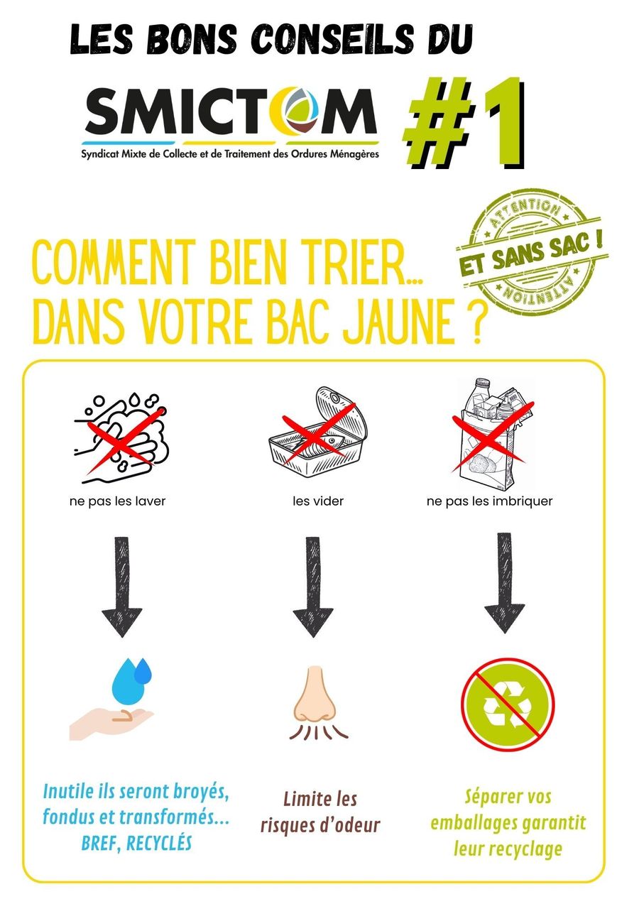 Les conseils du SMICTOM pour faire bon usage du bac de tri :