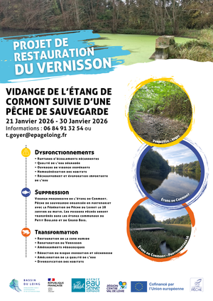 Une pêche de sauvegarde organisée par l’EPAGE du Bassin du Lojng en partenariat avec la Fédération de Pêche du Loiret sera réalisée